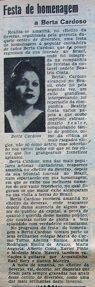 Berta Cardoso (1911 - 1997), Actriz e Fadista